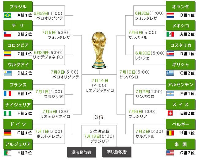 【ワールドカップ】 決勝トーナメント放映スケジュール